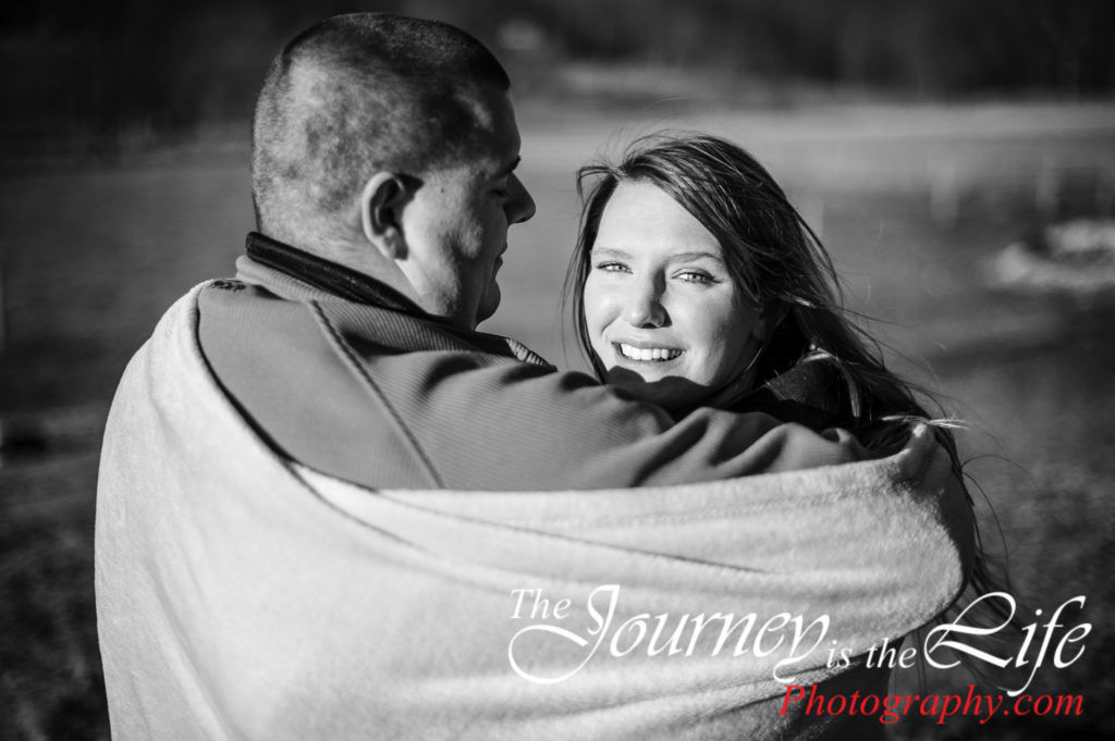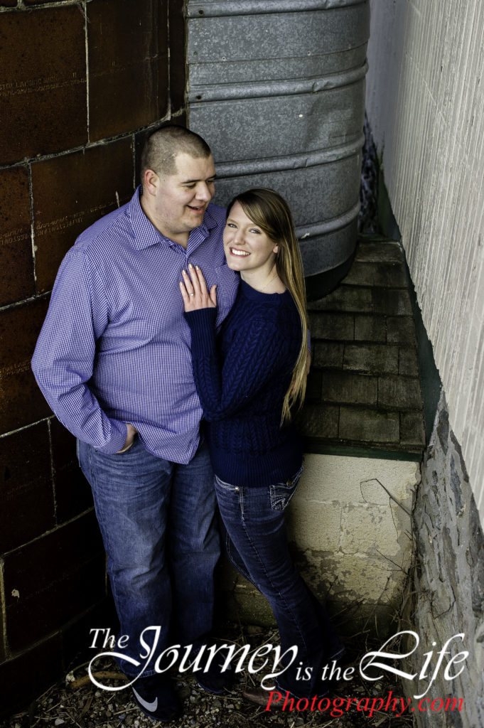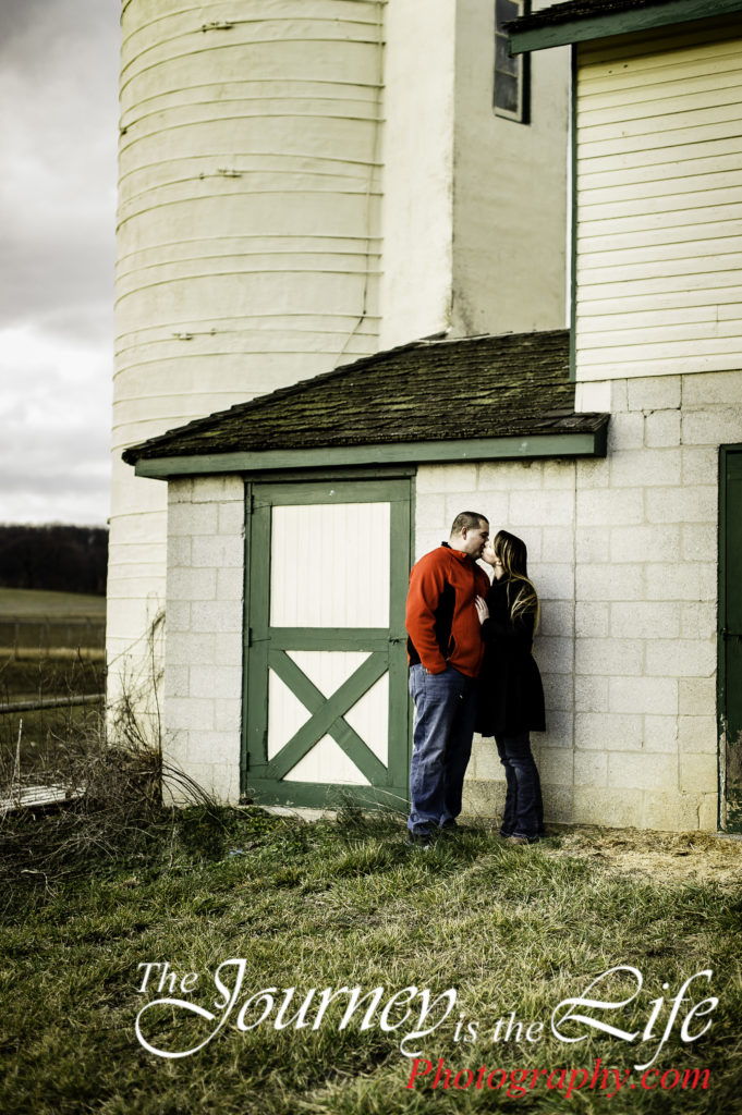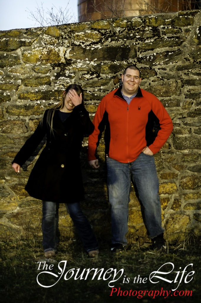 We had the the best belly laughs with these two high school sweet hearts at their engagement session. Their session was located at a rustic farm nestled at the foot hills of the Pigeon Hills in Hanover, PA. Not all the laughs were caused by the groom-to-be; a few were at my expense. I climb up ladders, walk on stone walls, trudge through creeks at sessions; I often joke, “If I fall catch my camera!” Of course during this session not only did I fall once, I fell twice. At least I could make this couple laugh.
